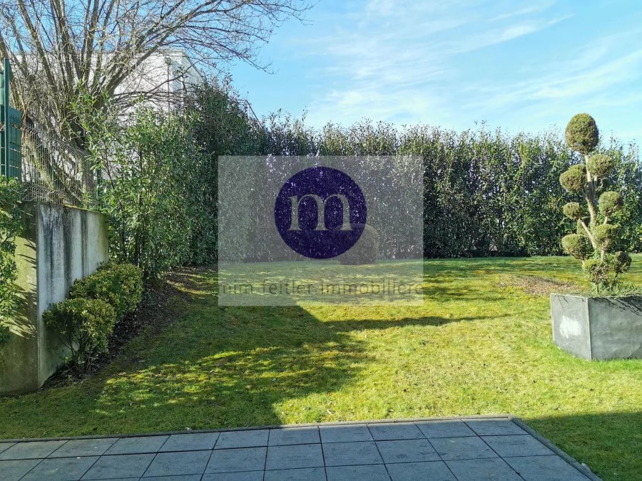 Appartement à vendre sis au rez-de-jardin de 128,80 m2 se compose comme suit:Beau living avec cuisine équipée donnant sur belle terrasse donnant sur jardin privatif clôturé de +/− 3,5 ares, 3 chambres à coucher, salle de douche avec fenêtre, WC et lavabo, salle de bains avec baignoire, lavabo et WC, WC séparé, hall, cave, buanderie commune, 2 emplacements intérieurs.